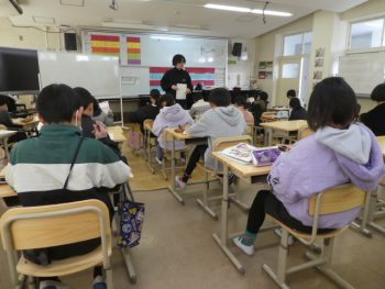 3学期のスタート時は、各クラスで3学期のめあてを決めたり、係分担を決めたりする時間もありましたが、今週からは学習活動も本格的に始まっています。今日、明日の2回にわたって、木曜日の1限目の授業の様子を紹介します。