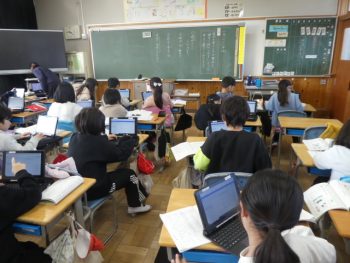 今朝は冷え込み、この冬初めてめだかの池の水面が凍りました。1限目に5年生の教室では算数の授業が行われていました。2000円の30%引きの代金はいくらか、式をたてて求める学習活動ですが、みんなの前で発言する子が「ここまではわかる?」「これは、割引の金額」「わからないときは手をあげて」など、友だちに分かるように問いかけ、確認する姿見られ、『さすが高学年』と思いました。また、3年生の国語の授業では、タブレット端末を使って「自分の考えを相手に伝わりやすいように書く」という学習活動に取り組んでいました。