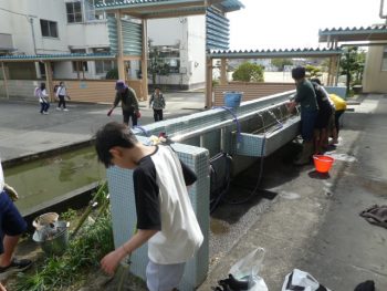 9日の午後、間もなく卒業式を控えた6年生の子どもたちは、これまでお世話になった学校のために、側溝掃除やメダカの池の掃除、除草作業などをしてくれました。側溝にたまっていた落ち葉はトラック1杯分にもなりました。みんなの力を合わせるとあっという間にきれいになりました。ほんとうにありがとう。