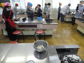 今日の午前中、4年生の子どもたちは、家庭科室で「白玉だんごづくり」をしました。4年生の子どもたちは4月から5年生になります。この学校の高学年として6年生といっしょに学校を引っ張っていってもらわなければいけません。また、家庭科の授業も新たに始まります。そんな中、この1年間でつながった仲間といっしょに協力しながら、5年生から使う家庭科室で、「白玉だんごづくり」をしました。できたお団子は、きな粉や黒蜜をつけておいしく食べました。