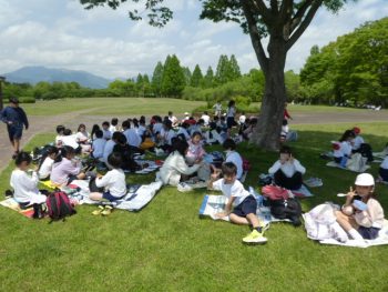 今日、なかよし学年で遠足がありました。たいへんお天気がよかったので、青空のもと、思う存分に遊び、木陰でそよ風を感じながら、おいしいお弁当とおやつを食べることができました。ドッチボールや大縄、だるまさんが転んだなど、なかよし班でいっしょになって楽しく過ごしました。帰りはちょっぴり日焼けした子がたくさんいました。今日は疲れたと思うのでしっかり身体を休めて、木曜日にまた元気に会いましょう。(今日は1・6年「川越緑地公園」、2・4年「富双公園」、3・5年「北勢中央公園」、それぞれの写真1枚ずつをUPします)